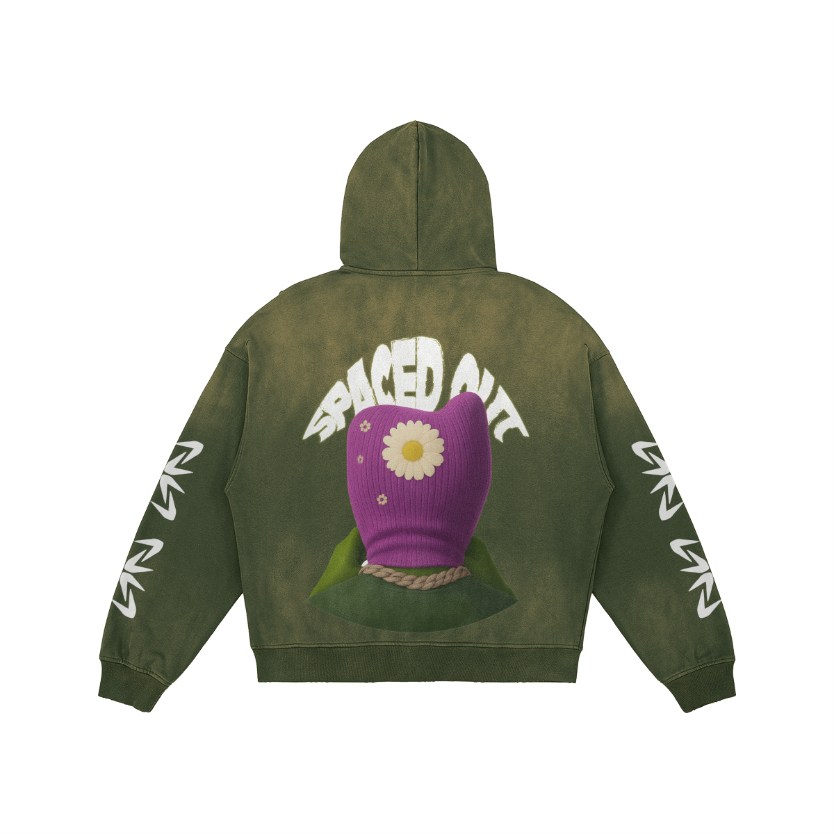 Crafted in 100% cotton, this unisex sun-faded distressed full-zip hoodie channels a vintage streetwear vibe. The sprayed fade wash and subtle worn-in details create a grunge-inspired look, perfect for oversized layering, casual outfits, or statement street style that blends comfort with a bold, lived-in edge.